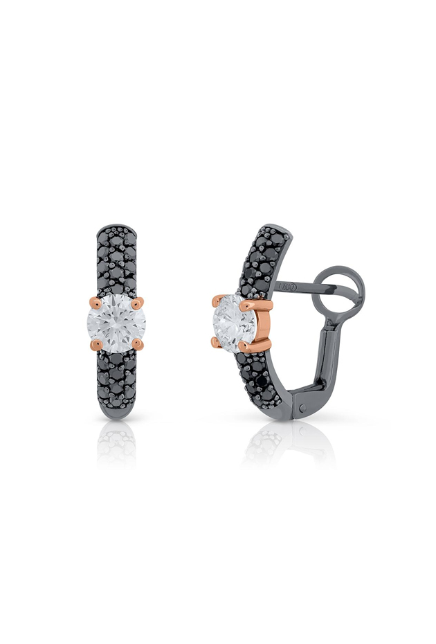 Pendientes Fabricados en Oro Rosa de Primera Ley (18 Kilates) con Diamantes Blancos y Negros.